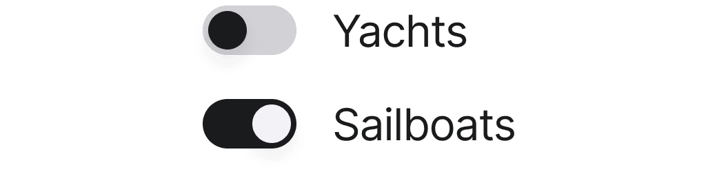A toggle displays two exclusive choices and enables the user to toggle the state of a single item to on (checked) and off (unchecked).